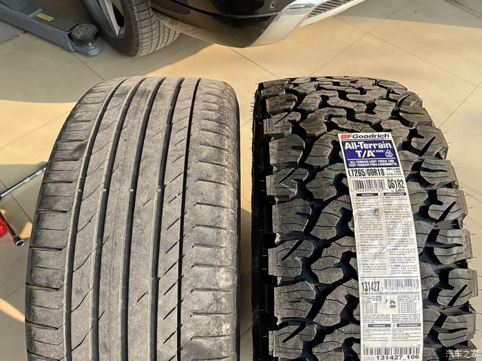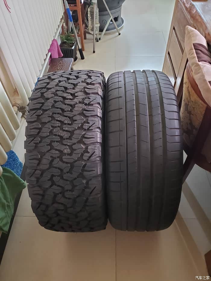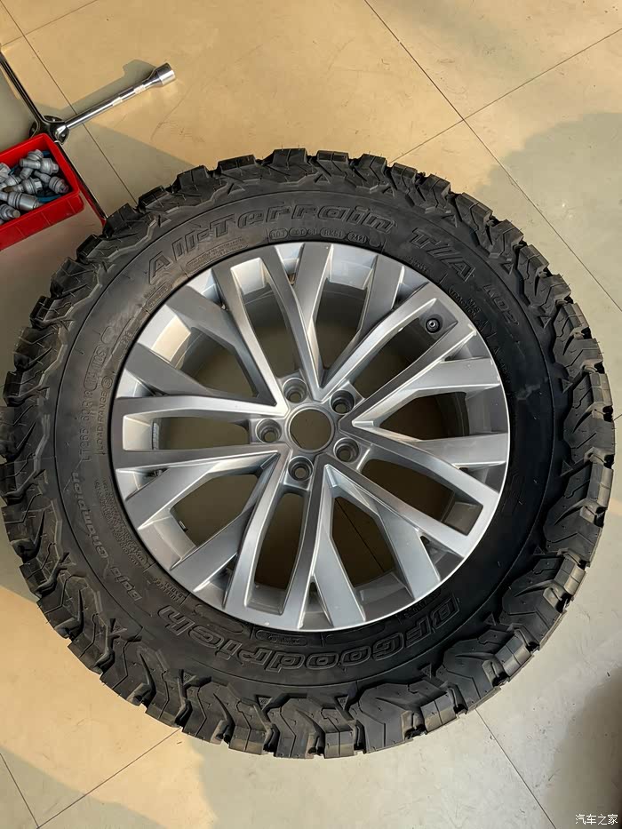 看了很多帖子,都是换19寸胎,我原车285-45-20,感觉就缩小一号,有意义但是不太大,如果再小就更好了。无意间在途锐论坛,看到@北京花匠的帖子,(途锐Q7卡宴)有相似性,他换的18寸轮毂?百路驰KO2,觉得我也可以尝试,在跟他详细交流后,得到很大帮助,学到了很多知识。我的想法是更换原厂拆车轮毂?AT胎,跟他不谋而合。