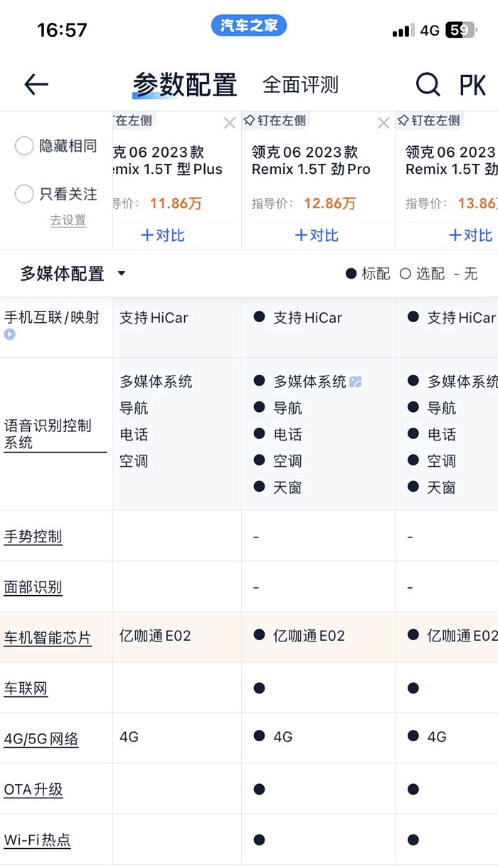23款领克06车机配备了忆嘉通E02芯片,6+64的内存搭配,相比于老款06的车机,流畅度的提升也是非常明显的,直白的说就是一个能用另一个难用!