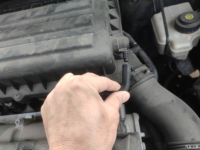 这个连接空气滤芯盒子的小吸管拔掉,其实我也不知道它是什么,但是换空气滤芯拔掉然后在安装还是没有影响的