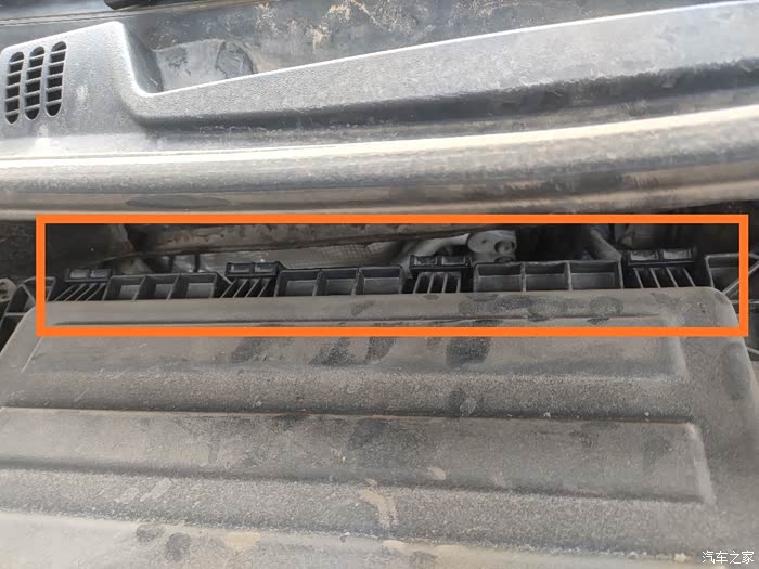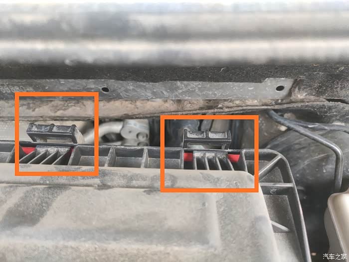 打开机舱盖我们要知道哪个是空气滤芯的安装位置,就是我图标的位置