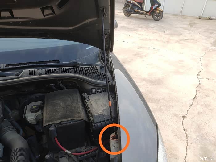 更换发动机空气滤芯,首先大家都知道空气滤芯在我们车子的发动机舱内,打开发动机舱盖,开关在主驾驶左腿的位置,掰下开关听到机盖有一个声音