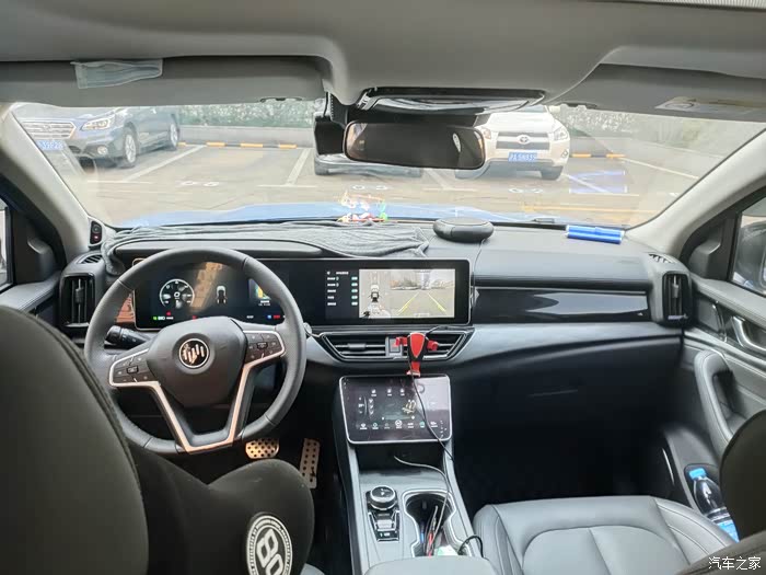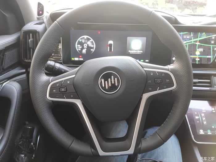 真皮包裹方向盘,抓上去温润,无论夏冬,都能够牢牢握住。特别是媒体屏的导航路线还能投屏导航地图和路线在主驾仪表屏,这个功能太喜欢,减轻了颈椎一大半的负担啊!