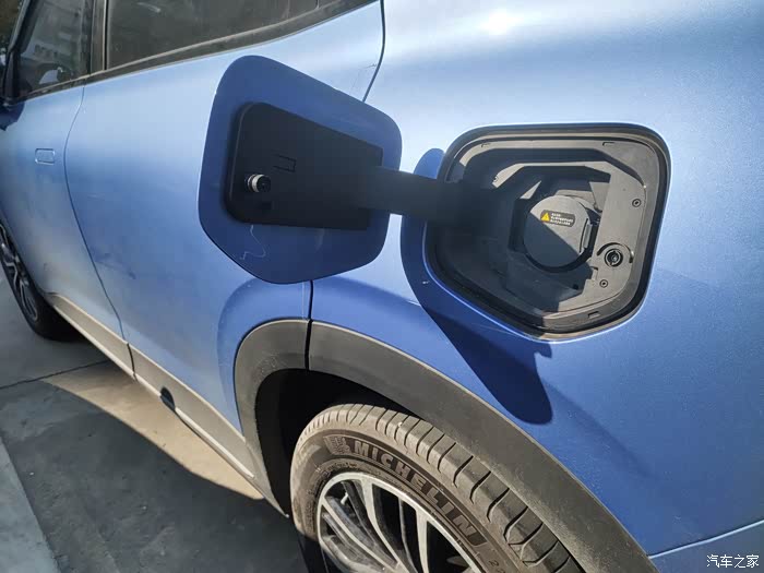交流充电接口在车子的左后方,充电口打开,有LED照明,用户贴心设计,不起眼但是很实用。