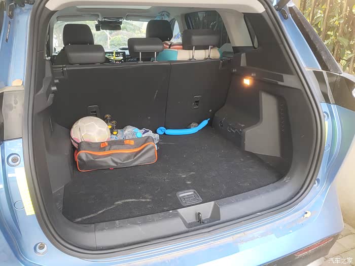 后备箱空间足够,一侧有暖色照明灯,给人停车到家拿行李回家的感觉,很温馨,空间么,五百多升,座椅还能放倒,装东西不要太方便,全车包含小孩五口之家,妥妥的够用。