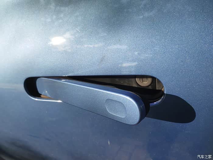 门把手设计细节非常全面,隐藏式门把手,车子上电后可以按压前部拉开,也可以等上电后弹出打开,主驾也能通过钥匙进入。