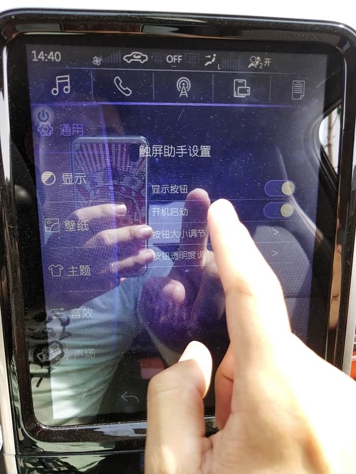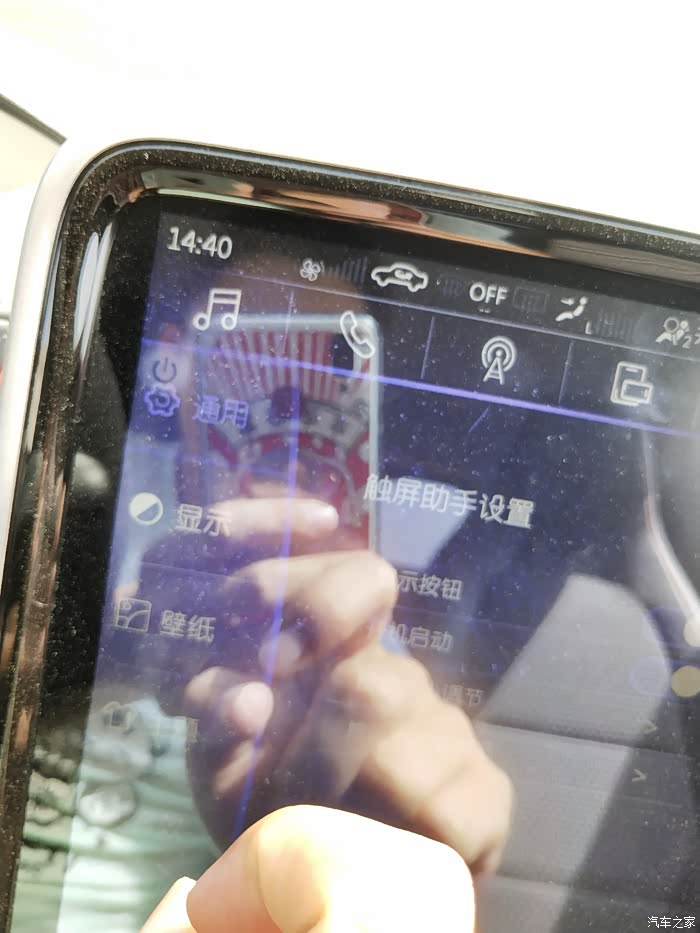 “通用”一栏,右侧向上滑,可以看到“触屏助手选项”,默认灰色,长按两秒钟,即可正常点击