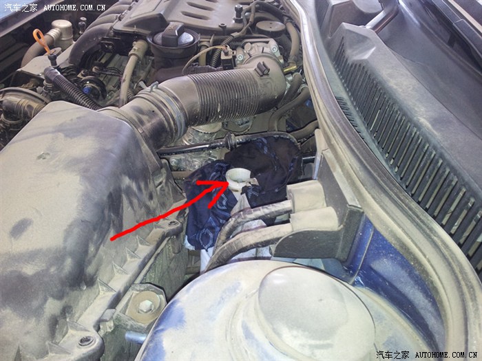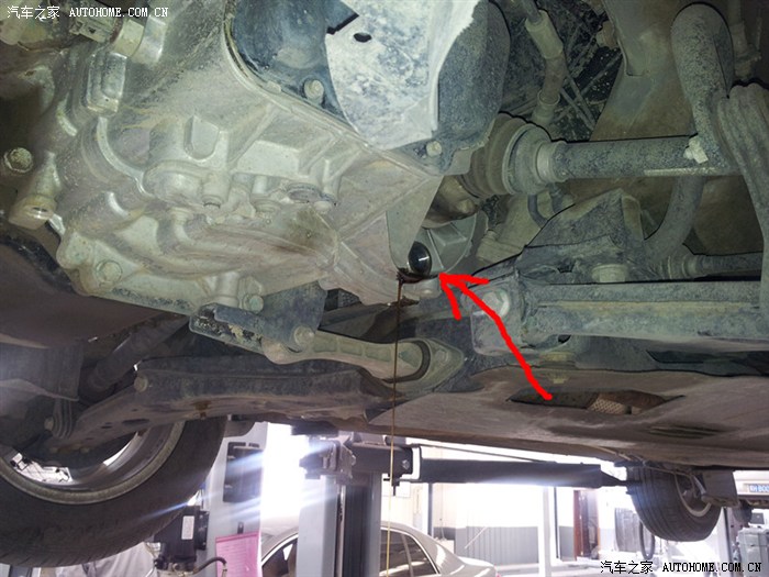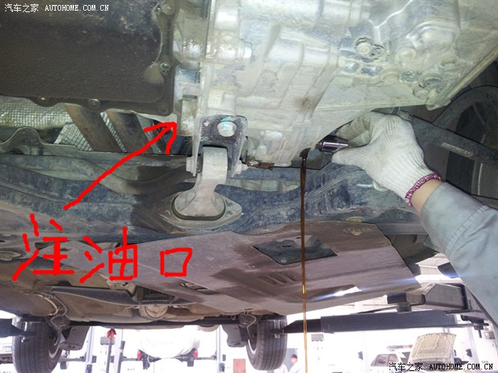 加变速箱油的位置就在它的对面,当时有事情耽搁了,没有拍下来(箭头所示的位置,用手动的压力泵打进去的)