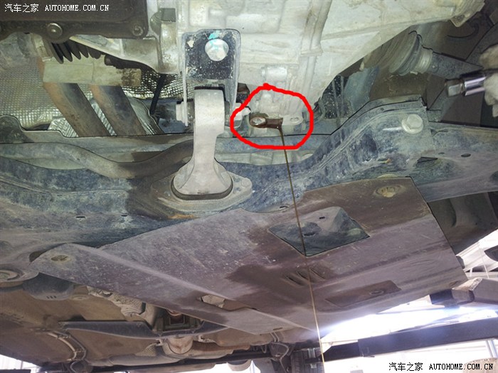 发动机下方的变速箱放油口