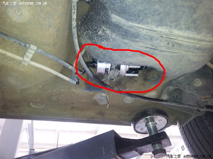 正在拆汽油滤芯,这个拆装都有些麻烦。主要是空间太小