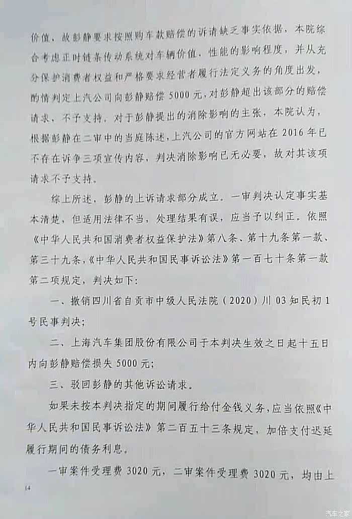 上汽集团虚假宣传案终审!虚假宣传成立,赔偿车主5000!