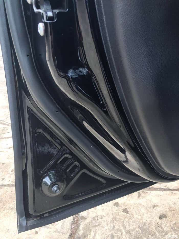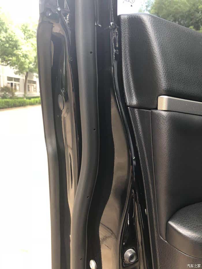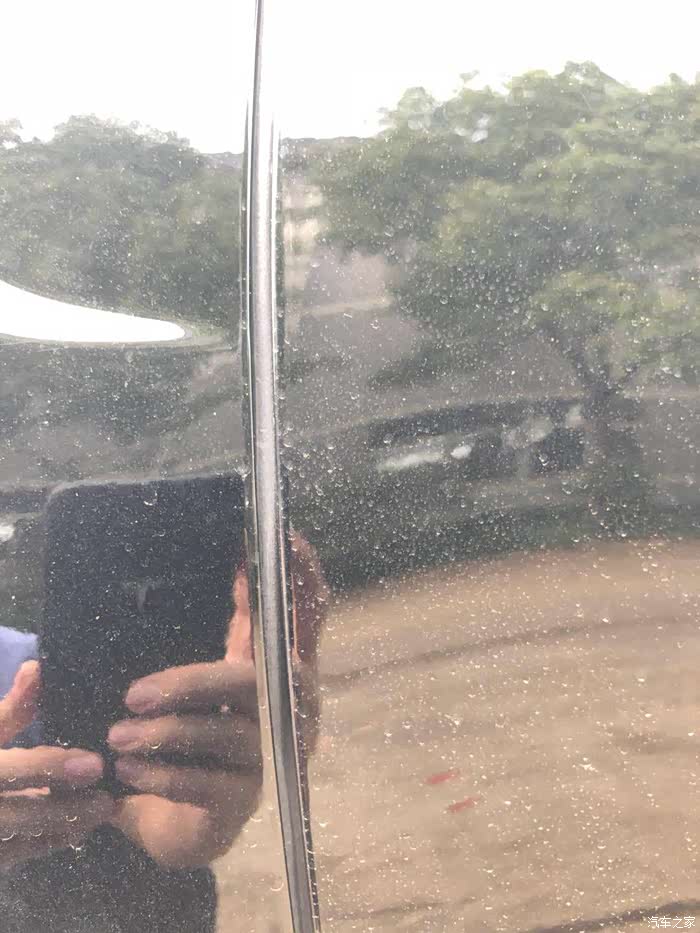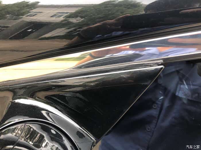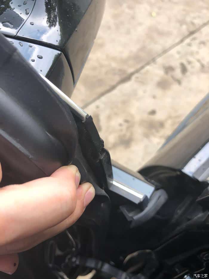 店里把反光镜区域的三角区给卸掉了,把里面打满一圈黑色的胶。现在把密封条掀开,都能看见黑色厚厚的胶。前后总共来来回回打了三次。店里说再让我试试。