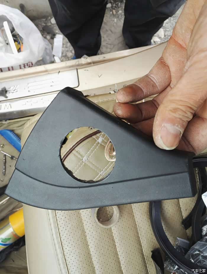 我的是套装喇叭还有高音要安装,我准备安装暗的,用送的开孔器开一个合适的孔。