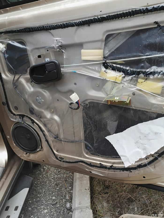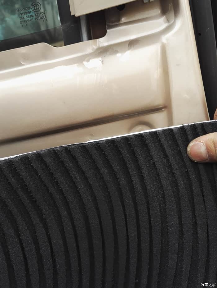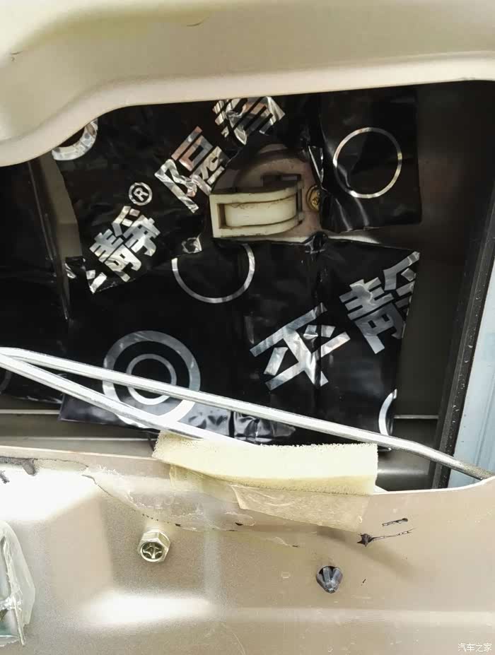 全部贴好,在压好。里面2层就可以了,等一下在贴一层止震板在外面,把车门上的塑料纸换了。