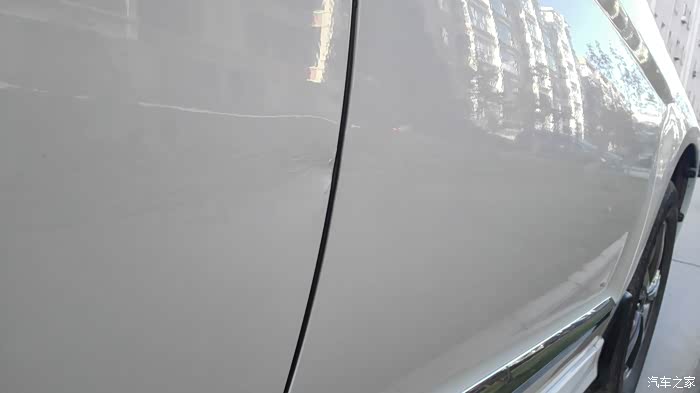 先上一张爱车近照,左侧面中间有一道长达40公分的擦伤,两门相接处最深已见铁,自己处理的,远观不仔细看看不出来的