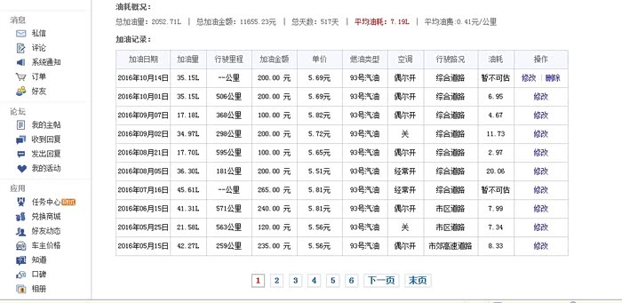 本人汽车之家油耗记录,前面还有5页子是一月三箱油的记录