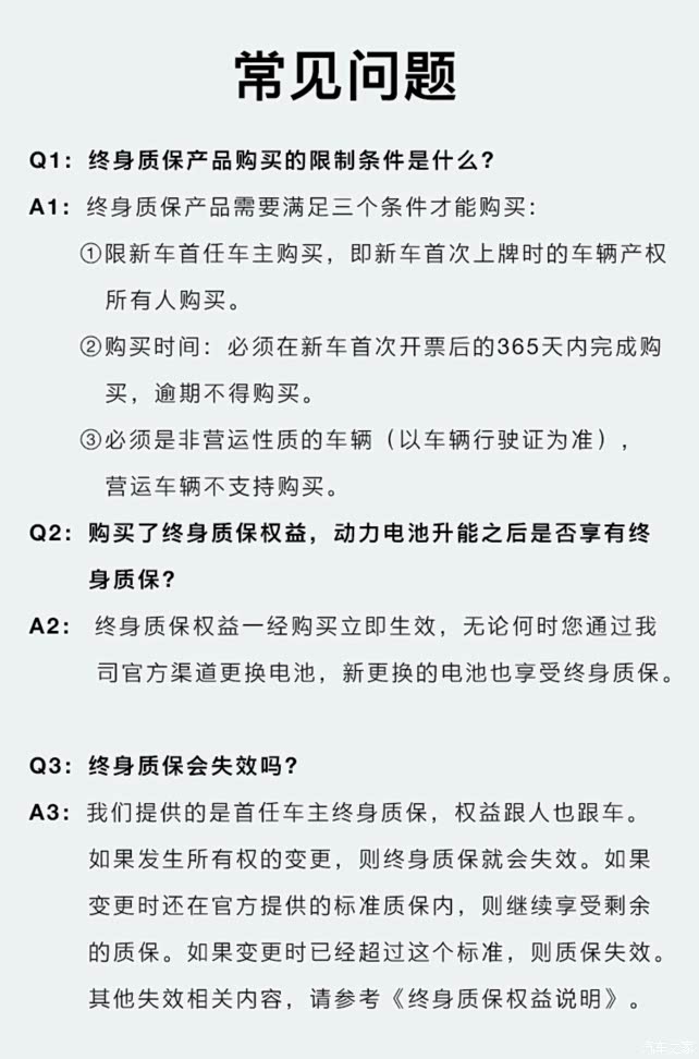Q2:购买了终身质保权益,动力电池升能之后是否享有终身质保?