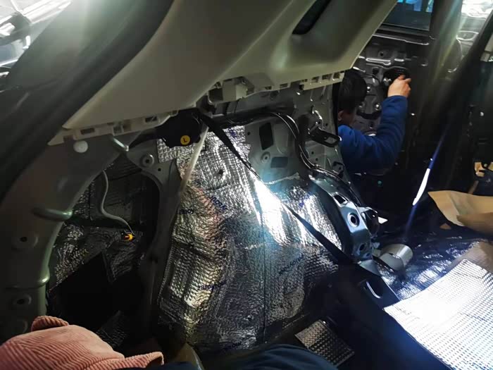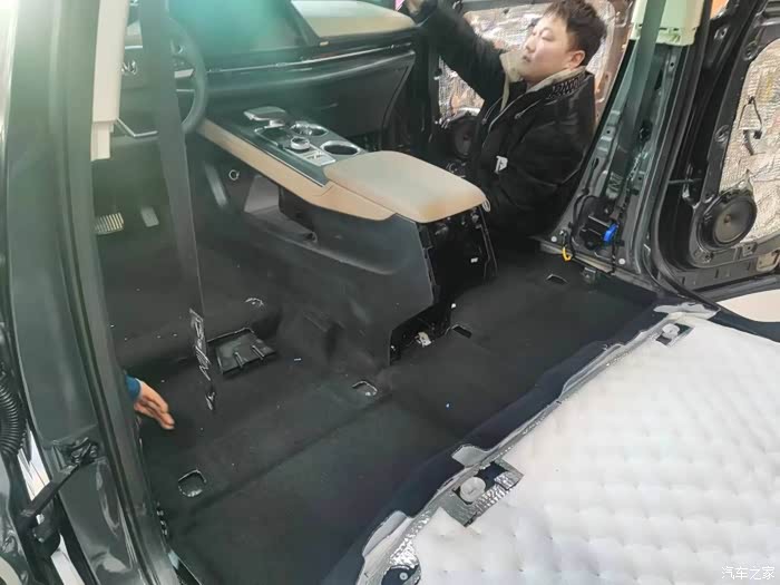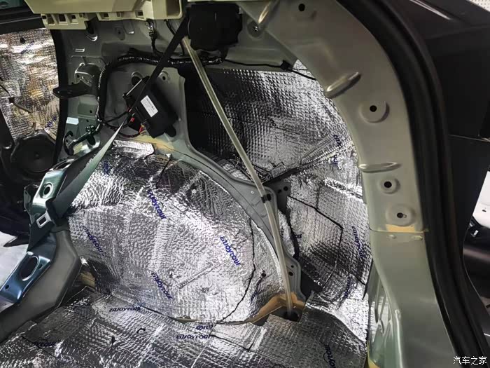 之前呢,因为经常跑高速,这个车子的胎噪跟风噪有点大风燥还能接受,主要是胎噪跟底盘共振的这个噪音有点厉害,尤其是过那个粗糙路面的时候,它会引起哗哗声音很难受。之前也了解过隔音材料隔音技术什么的,也逛过好多论坛,看过好多车友,心里也有一定的准备吧,知道不能完全隔断这个噪音,但是也能有一定的效果,思来想去决定从提车到现在一年零两个月还是要把隔音做了。做隔音的地方是北京一家专门做这个隔音音响升级的,也了解了很长时间,老板人很不错,就去他那做的。