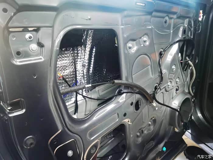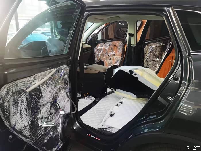说一下试车感受吧,4门有明显的很明显的效果,以前关门的时候是那种咣咣咣,感觉玻璃要碎的声音,现在的是那种厚重的闷重稳重的那种感觉很明显,底盘呢有一半的效果吧,我感觉底盘做的这个隔音还是少了,再厚一点就好了,因为底盘就一层薄薄的铁皮它没有任何东西,还是得厚一点效果会更好,基本上就没有噪音了,有也就是风燥了,这个改变不了,因为它这个玻璃就是单层的。