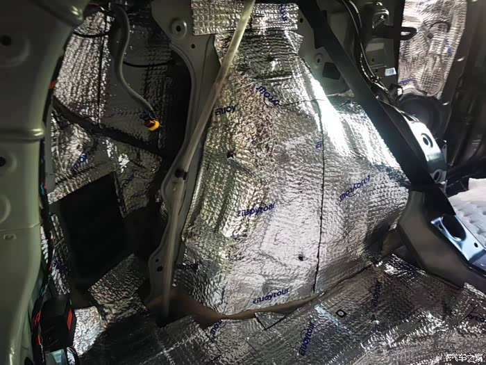 原车没有隔音材料,只有一个塑料布啊之类的东西,没有任何效果。期待做完以后的效果。