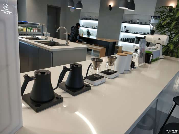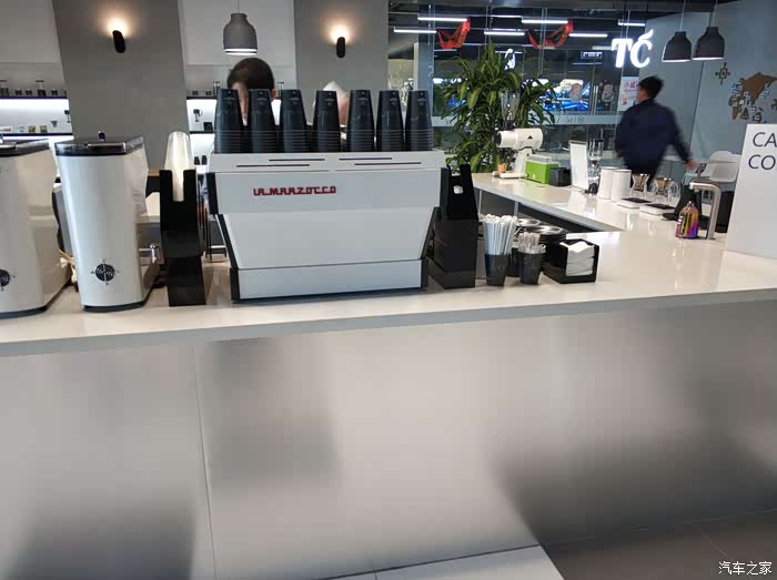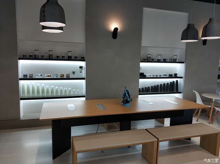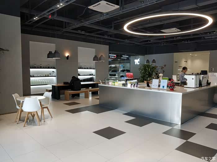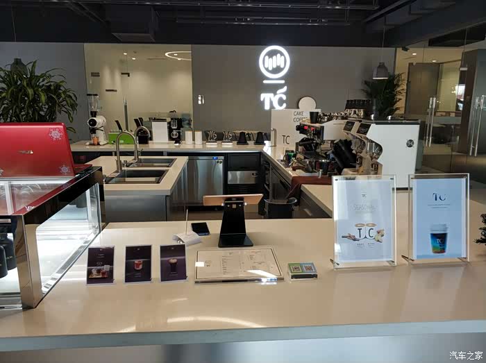 维修接待区连接着TC咖啡,这边稍微解释一下,TC就是Trinity Café,从去年开始威马汽车联手TC咖啡在活动布展、开设店面等多方面开展跨界合作,集美店是北京首家“威马×TC”跨界合作示范店。