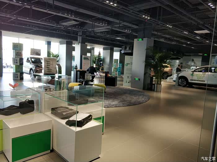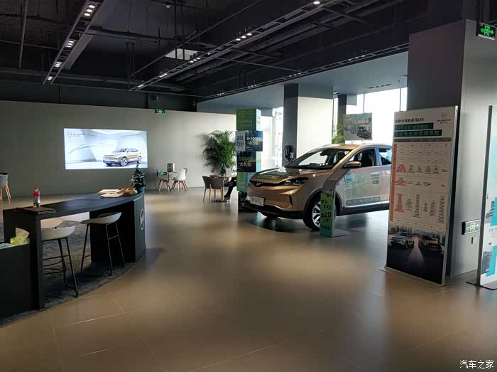 TC咖啡的另一侧是销售展厅,展厅内有一金一白两辆EX5和一辆金色EX6,还零散的分布了一些休息区。