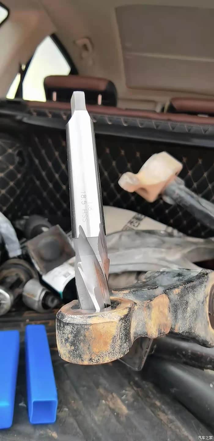 从避震器孔中心到摆臂球头孔中心H8是145毫米,W166是158毫米,也就是说W166摆臂整体比H8下摆臂长11-12毫米,手工测量数据有误差。H8下摆臂球头孔厚度31毫米,小孔19毫米,大孔23毫米,锥度角3.567度,使用1:8铰刀就可以打出这个孔,打孔关键技巧先用4mm或者6mm的钻头定位,再用大一点12/16mm钻头扩孔,最后最关键的拿19mm钻头扩孔,然后上1:8铰刀小径18.7mm铰刀钻台下31.5圈,钻出合适的锥度和22.7mm大径,锥孔是垂直于摆臂球头,不要有任何角度,不然安装好有偏角,锥形球头拧着球头孔有掰裂的风险,至此最关键的锥孔数据就有了。