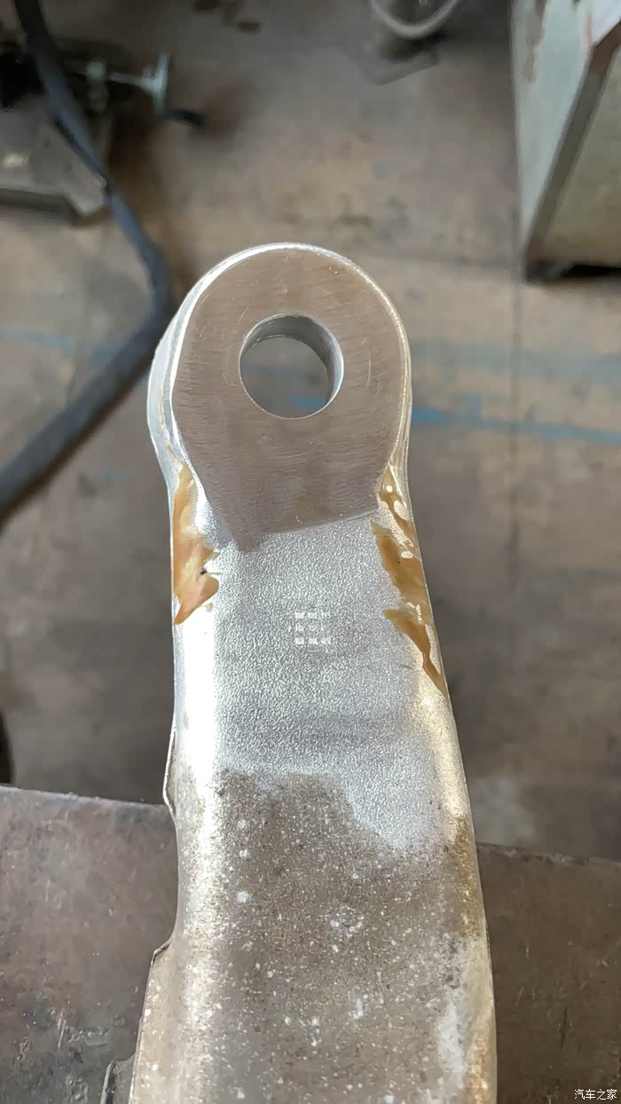W166摆臂球头孔小孔直径20毫米,距离摆臂头16-15毫米,哈弗H8的小孔到摆臂头17毫米,这些都是我卡尺测量的,数据肯定有误差。摆臂白色的是拿稀盐酸洗过的,不然焊接的时候影响与母材熔合。