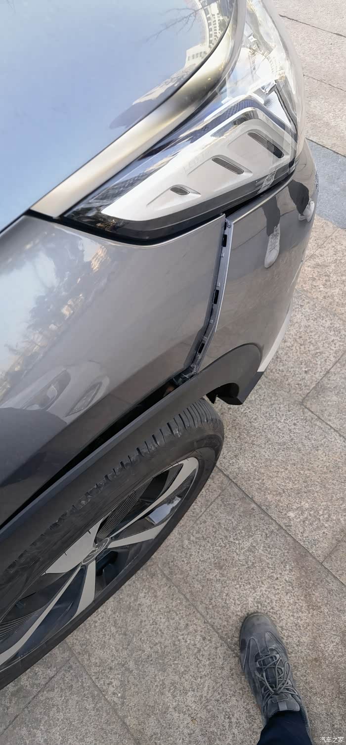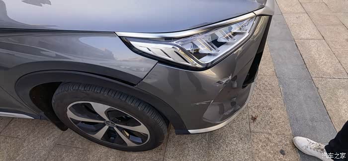 这个倒车刮蹭还是挺狠的,直接把我车右前脸保险杠撞错位了,底漆都干出来了,中网右侧也刮伤一块,不过好在没有伤到车灯,只在下面留下一到小划痕(不近看看不出来)。