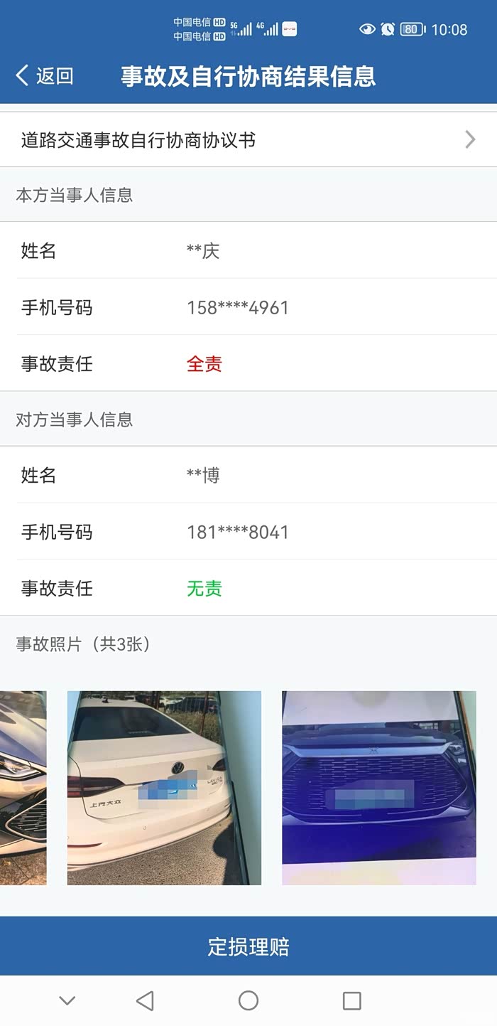 我们到达后处理的也很快,因为些事没有争议,对方全责,事故责任认定书一出,对方保险公司理赔员过来拍个照就结束了,下一步我去4S店定损维修就可以了。