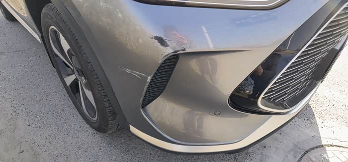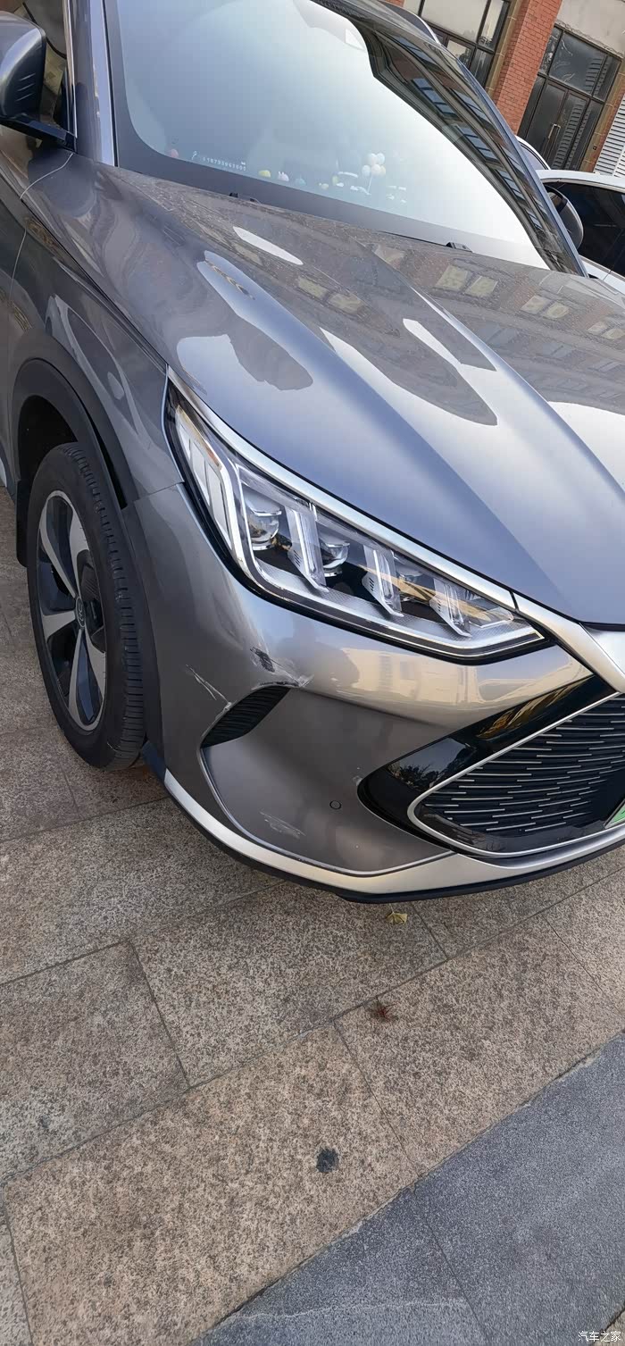 老远就看到一个带着安全帽的小伙子站在我车前来回踱步,在焦急的等我。我快步上前询问情况,他指了指我车右前脸保险杠说“我倒车不小心把你车刮了”。我顺着她的手指看了一眼我的宋大妈,果然右前脸被狠狠的刮花了。