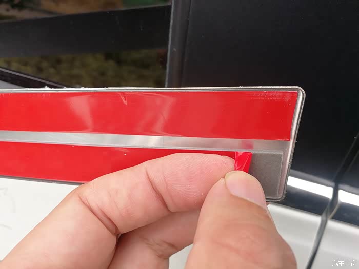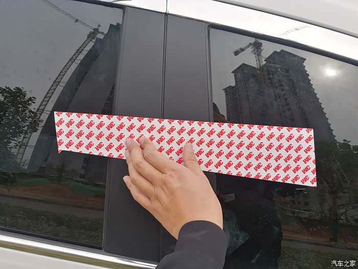 揭开后面的3M纸,纳米中柱真纳米,有点太薄了。(推荐车友选不锈钢车窗中柱亮条)
