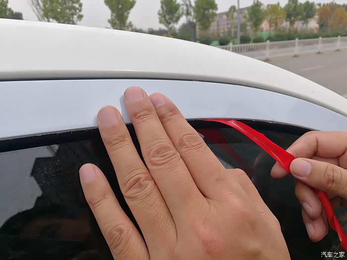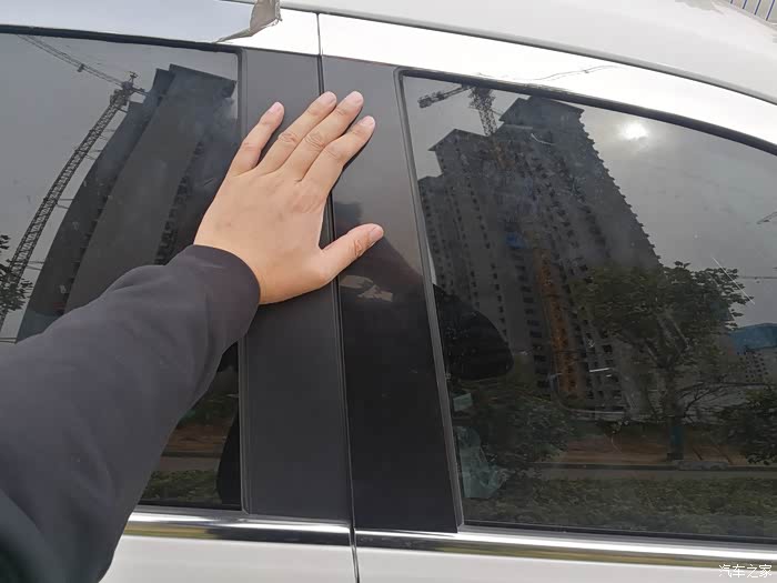 我先贴的车窗亮条,所以导致纳米中柱下部多出了一点。幸好下部有软胶条,可以把多余的纳米中柱部分藏在软胶条内。