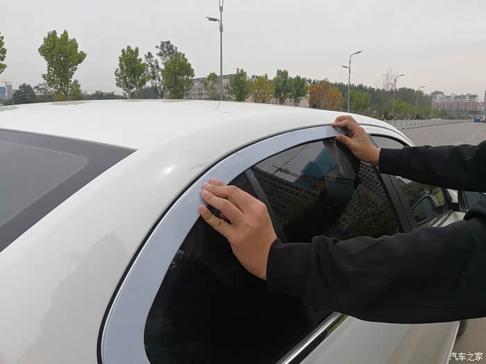后车窗亮条关键点是这个弧度的粘贴,一定要贴合好。