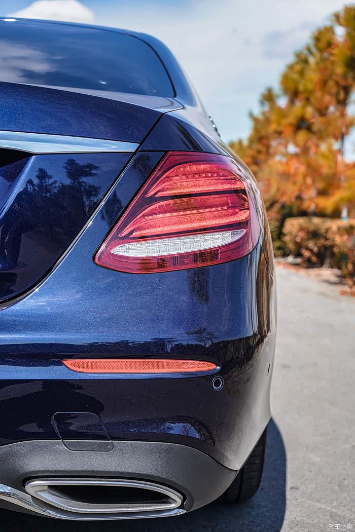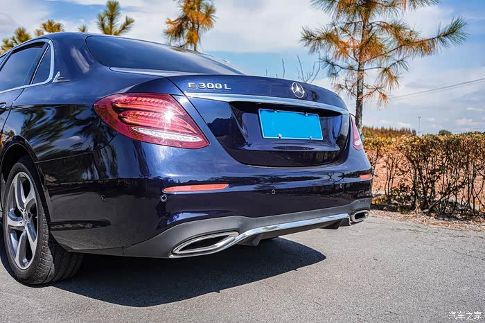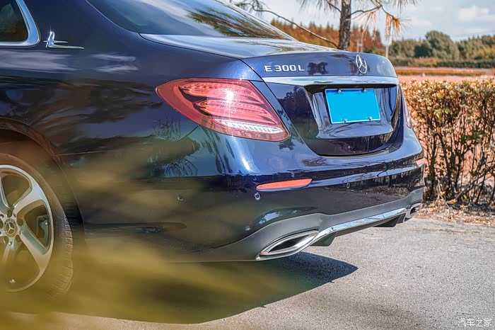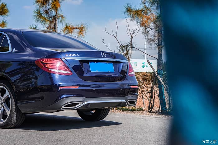 从正后方来看,奔驰E300L的尾部采用了左右收缩的设计,