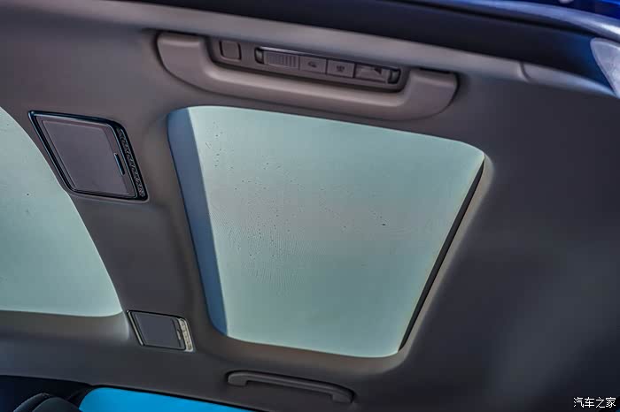 同时车顶有一个分段式的天窗设计,