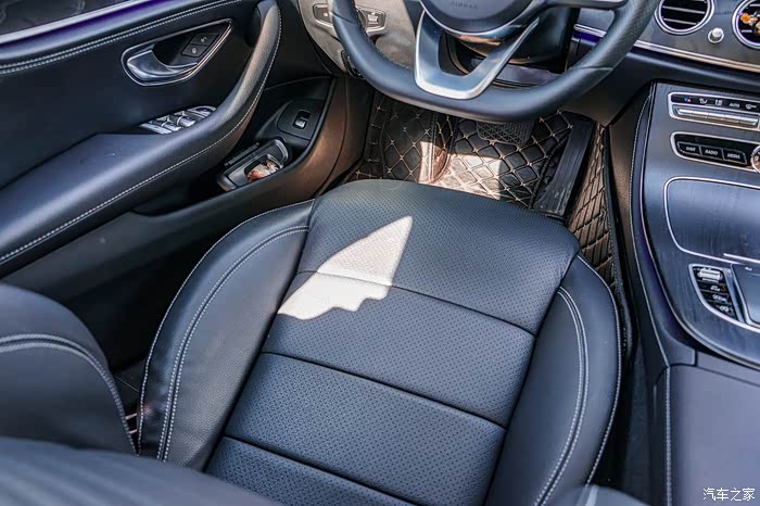 座椅方面,奔驰E坐垫和靠背都采用了打孔的设计,