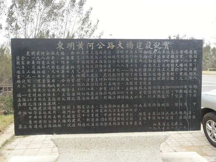 东明黄河公路大桥位于山东省菏泽市西北,是山东省境内最长的一座公路大桥,被誉为“齐鲁第一桥”。大桥全长4142.14米,宽18.5米,4车道。该桥于1991年10月正式开工修建,1993年9月全桥竣工通车。