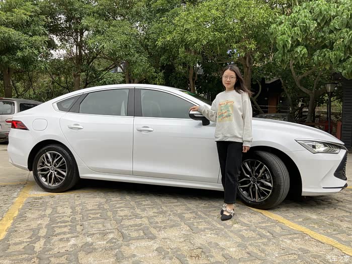 在4S店,本来我们要看的是其他车型,但销售小姐姐听完我们的需求后,推荐了秦PLUS DM-i。这款车当时还没有上市,店里也没有试驾车,我一开始有点犹豫,不过听到小姐姐介绍说这款车的混合动力系统有很大变革,在满电满油情况下最大续航里程能超过1200km时,我感觉眼前一亮,就它了!