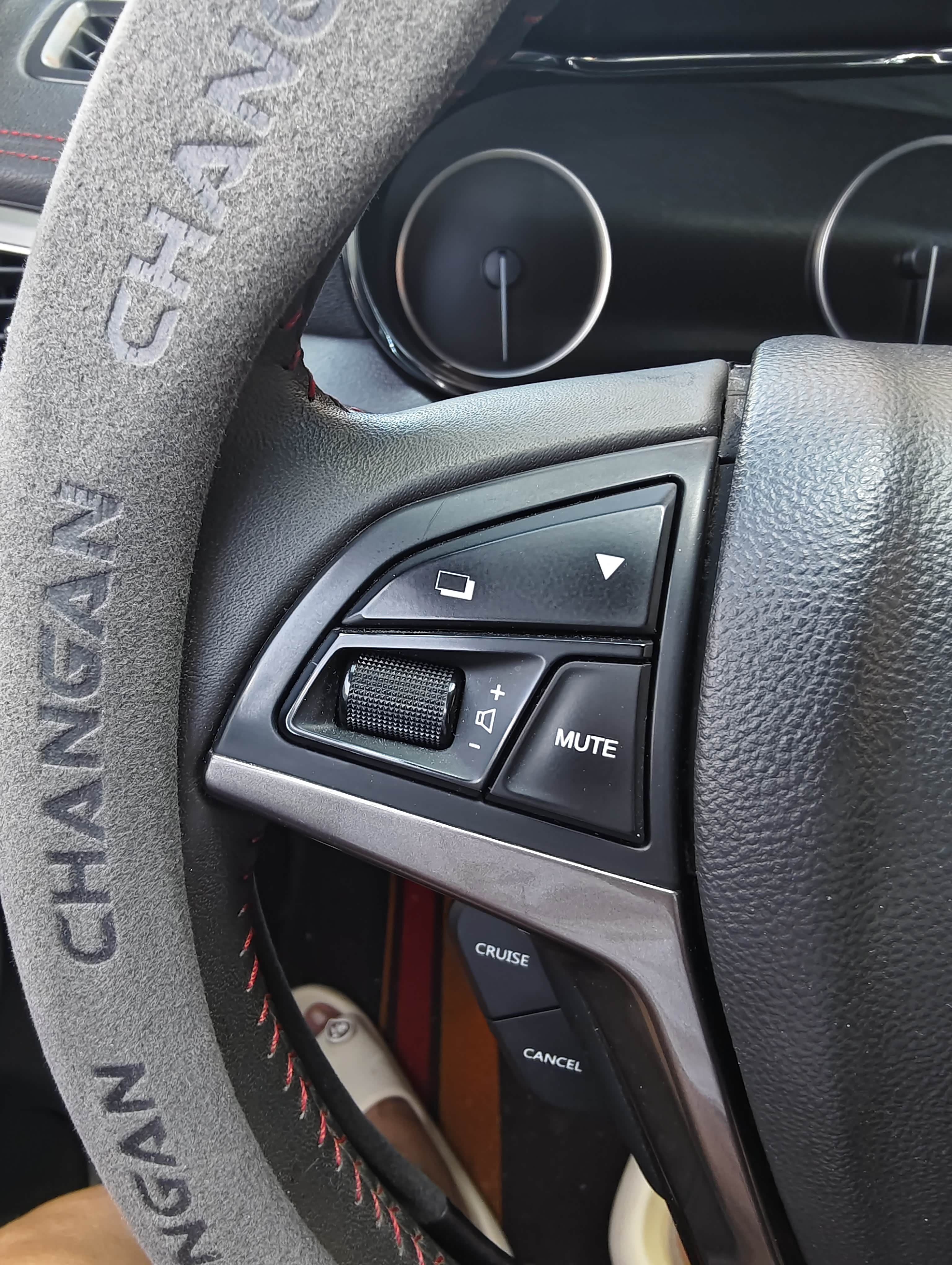 车友们大家好,我是长安cs75车主涛涛,今天给大家介绍一下我这个多功能方向盘所有的按键功能都有那些,左上角是定速巡航功能开关键,下面是恢复键,右面是定速巡航加速减速按键,