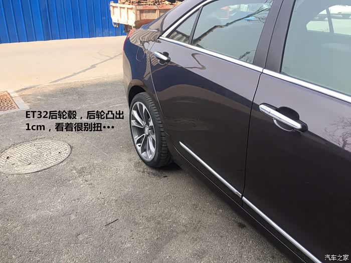 如果是“正版”ET值42的轮毂,安装上就是真正顶配领先ATS-L的样子,看着很和谐。而如果是ET值32的后轮轮毂,安装上后轮毂会凸出车身翼子板1cm左右。要知道,对于硬派越野SUV来说,如果轮胎凸出车身兴许还更有霸气,本身悬挂行程也长,看着更硬气。但对于一台主打运动操控的后驱轿车而言,本身车身就“低趴”,轮胎再凸出车身,看着很别扭,就跟小时候玩的大脚车或者拖拉机一样,视觉效果极其不协调,对于“吹毛求疵”的我来说,真的无法接受。