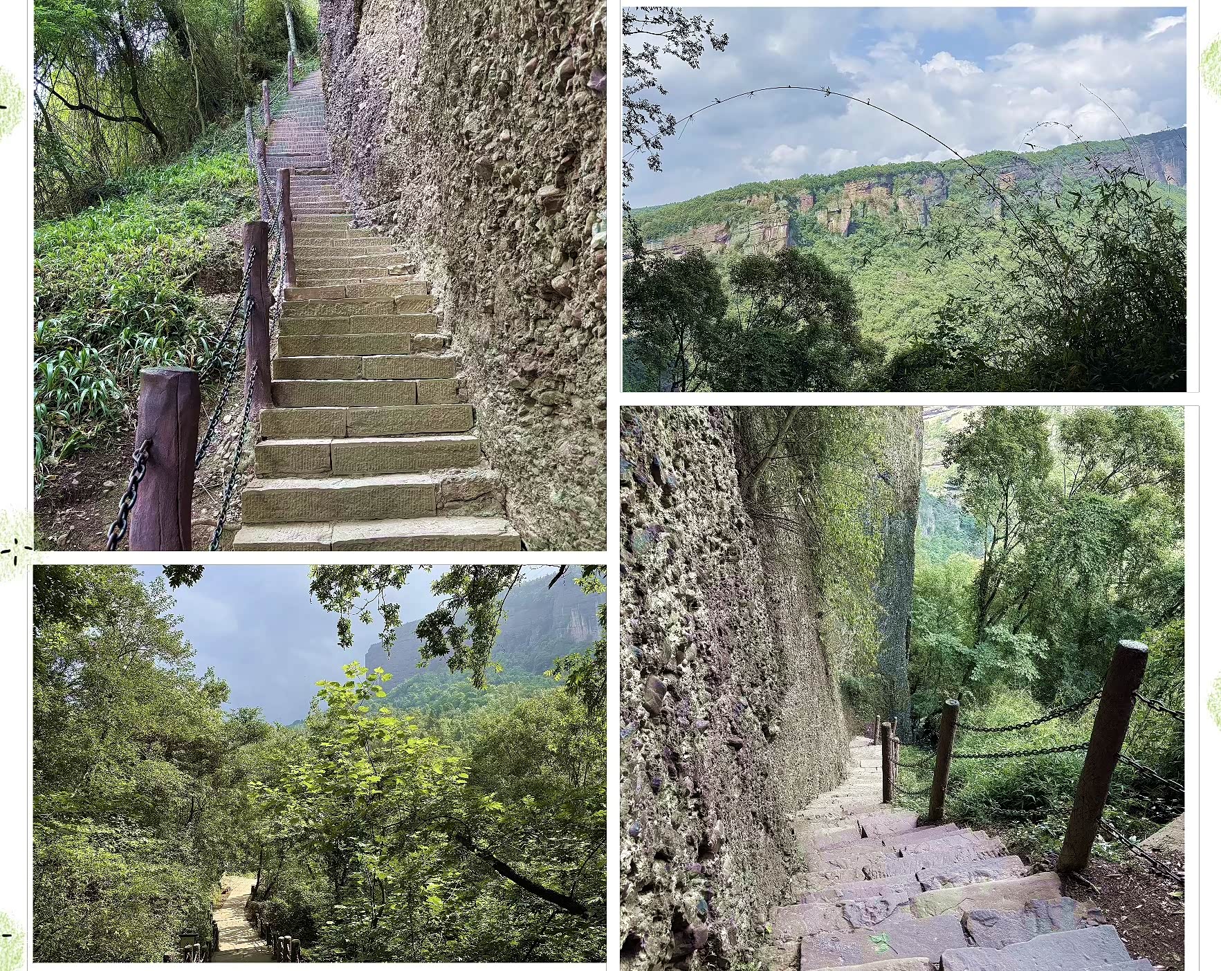 另外鸟道和猿猱道则是极具挑战性的路线,鸟道傍着绝壁蜿蜒而上,路宽仅30厘米,时而侧身,时而匍匐;猿猱道贴着崖壁前行,呈“之”字形向上,脚下最窄处仅15厘米,一面是陡峭山壁,另一面是凌空悬崖,行走在这两条道上,不仅能体验到惊险刺激,更能从不同角度欣赏剑山的美景,但请注意一定要结合自己的情况(恐高、体力可能有限)来规划游玩路线哦。