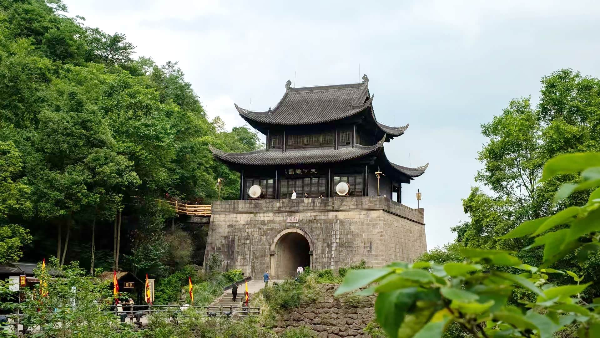 继续前行会先经过剑阁门楼,这是景区的标志性入口建筑之一,古朴厚重的城楼透着关隘的威严,仿佛一道屏障守护着身后的险峰。