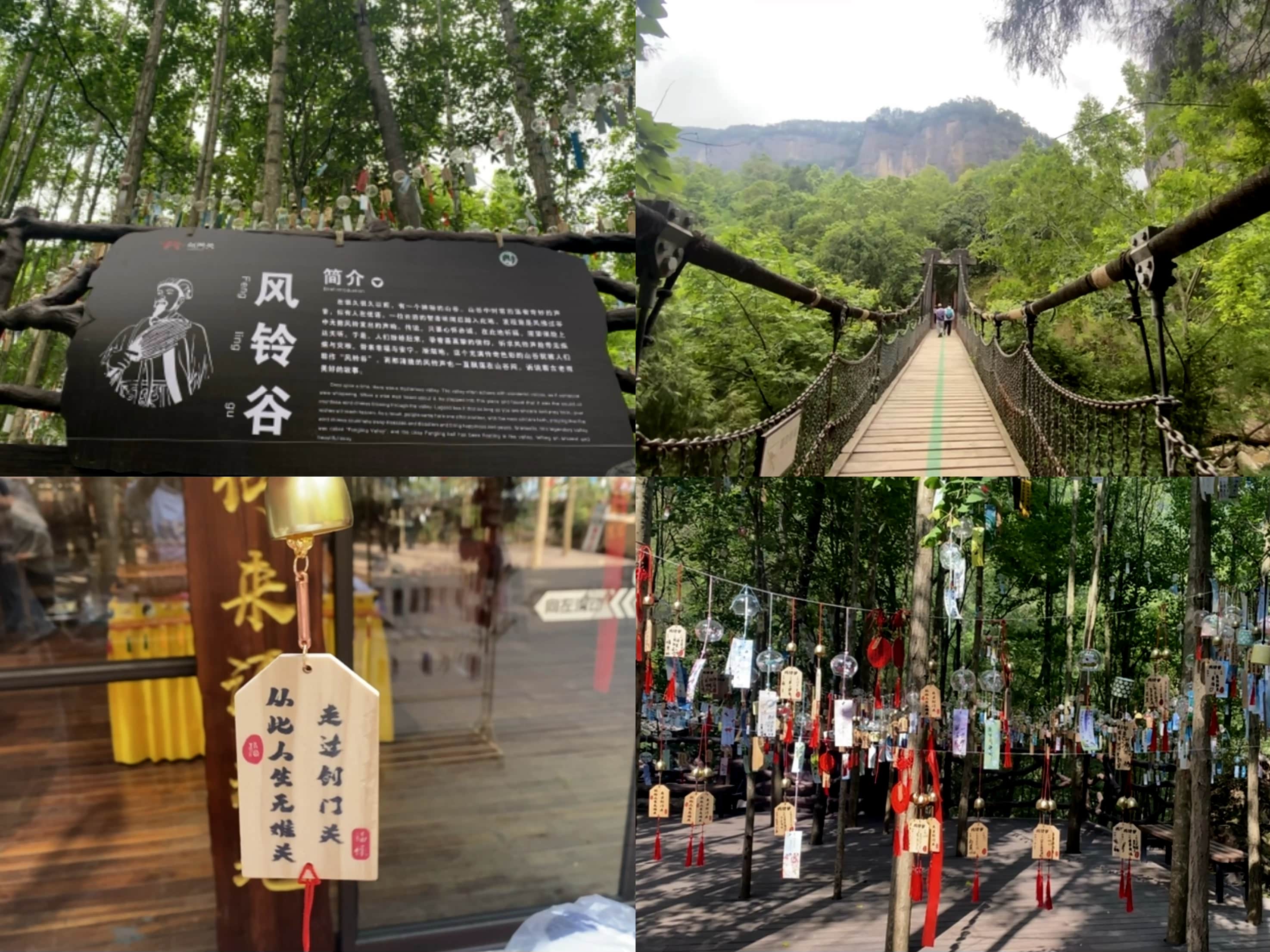 前往风铃谷,风铃谷隐匿于剑门关雄伟山峦之间,谷中被郁郁葱葱的森林所环绕,树木参天,枝叶交错,形成天然的绿色天幕,谷中挂满了许愿风铃,微风拂过,风铃发出清脆的叮当响声,为大山增添了浪漫气息,仿佛能听见古人的低语,诉说着千年的历史故事。