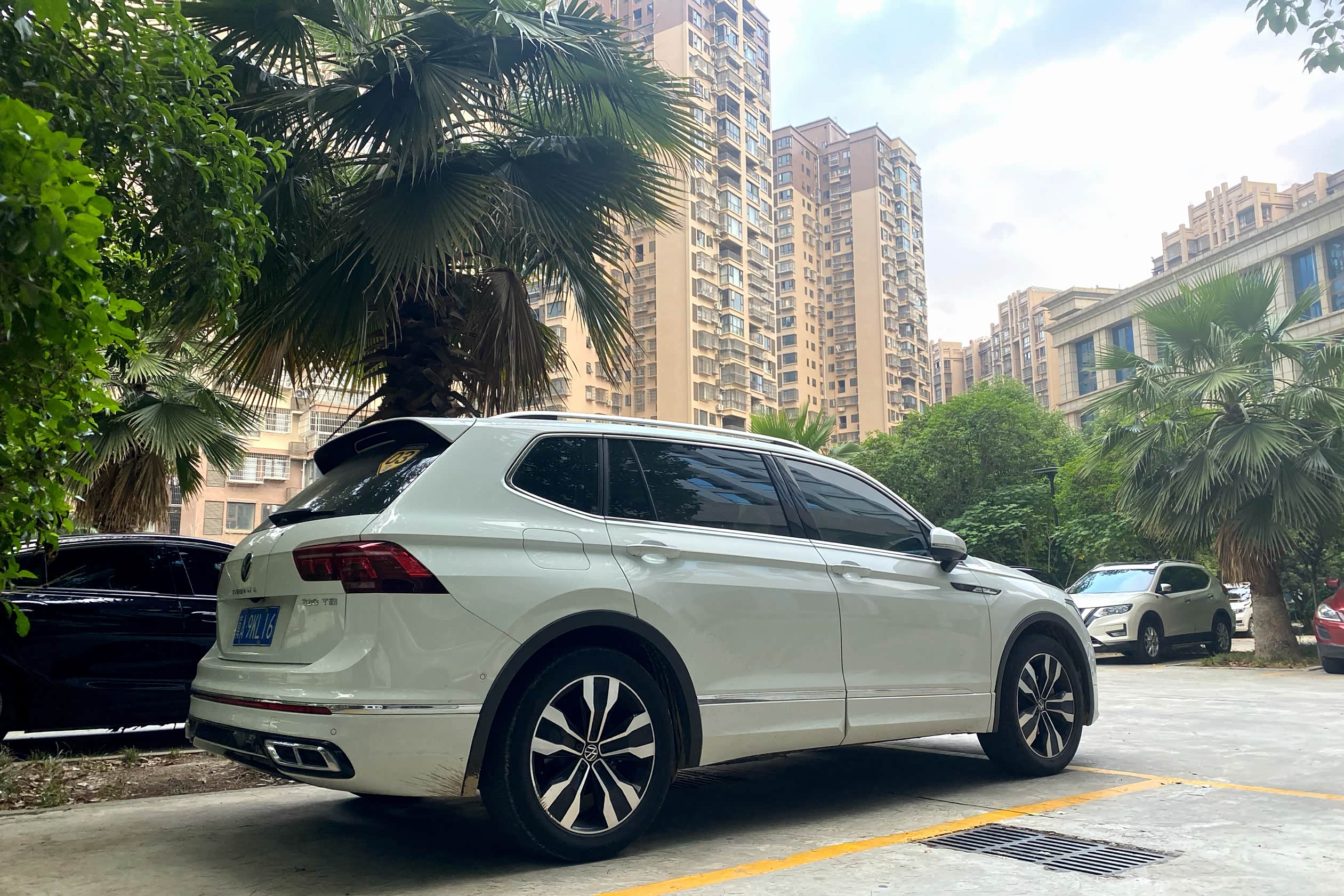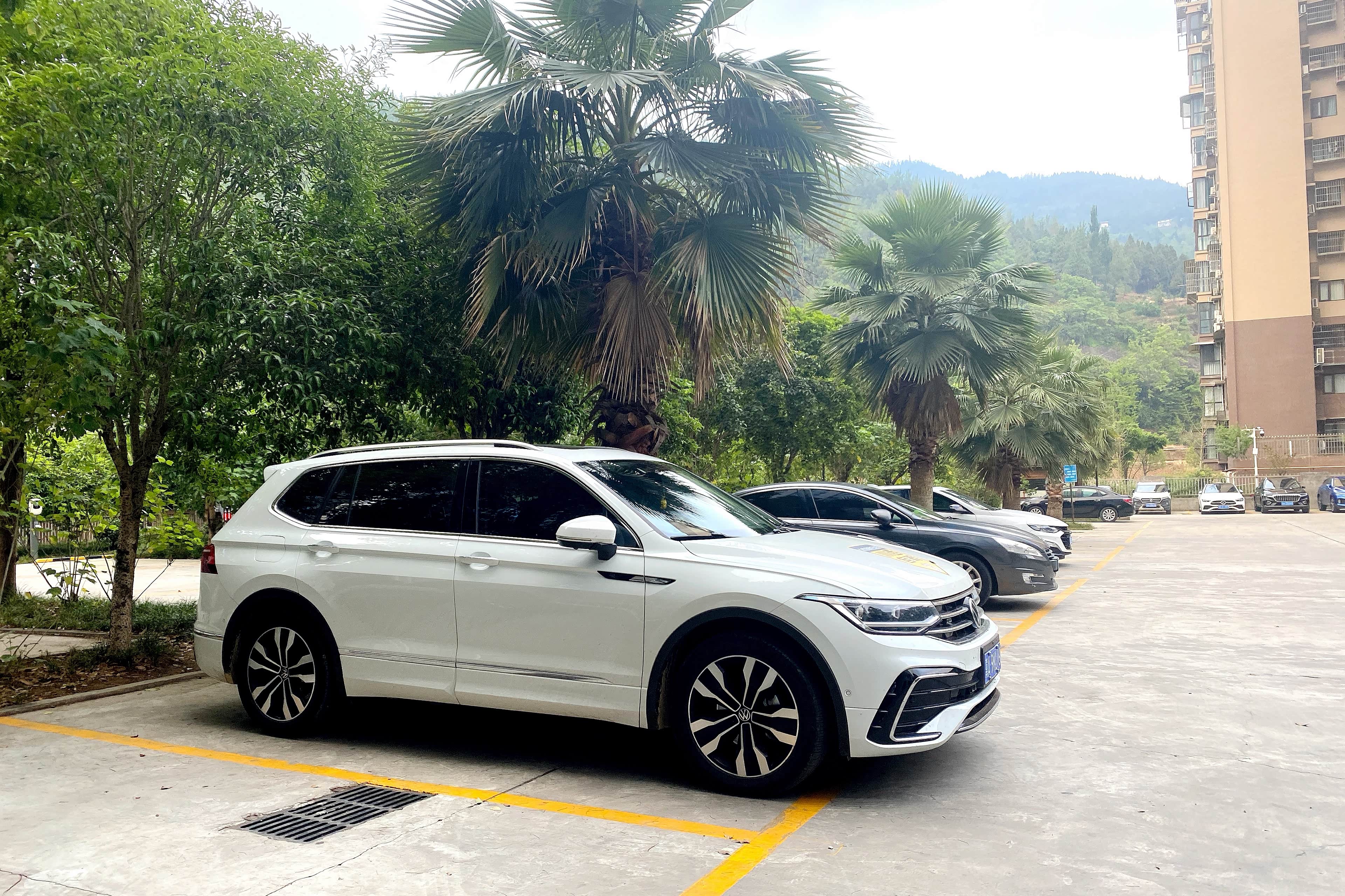 收拾好行囊往停车场走,猝不及防撞进一片椰树的浓绿里——我的途观L安静地停在树荫下,车身还沾着点川蜀清晨的潮气。