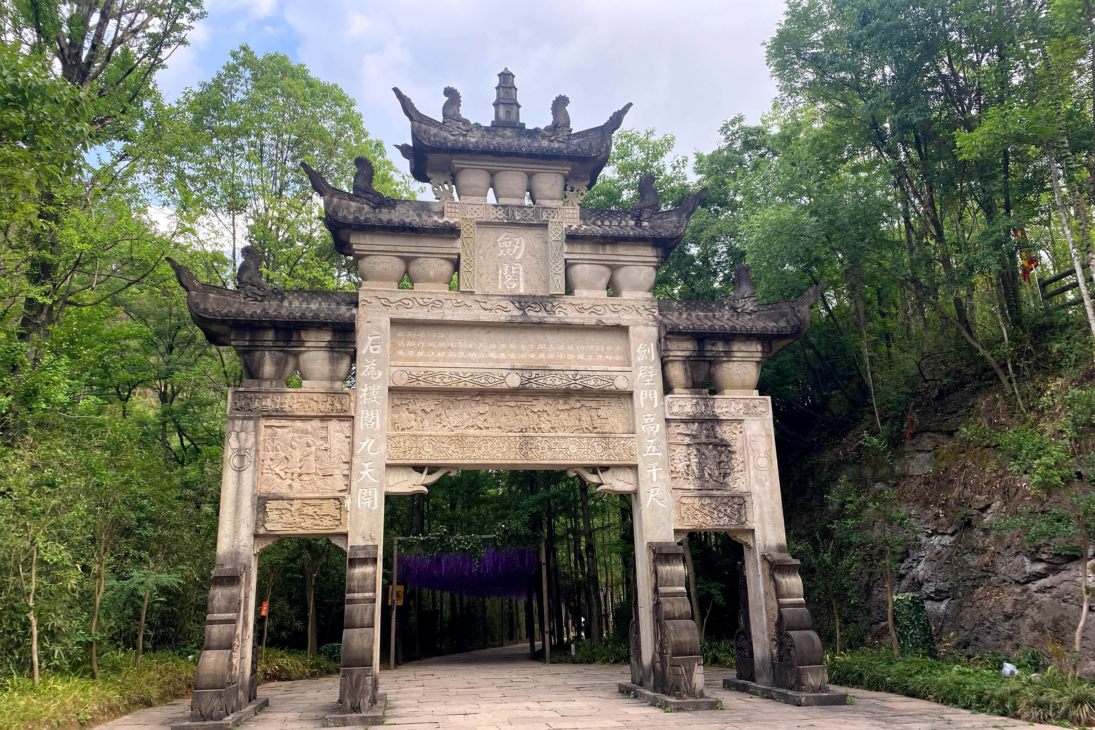 从南门入园后,便能看到刻有李白《蜀道难》的碑刻,“蜀道之难,难于上青天”的豪迈诗句,与眼前剑门的险峻奇绝相映,让人瞬间读懂诗中蜀道的惊心动魄。