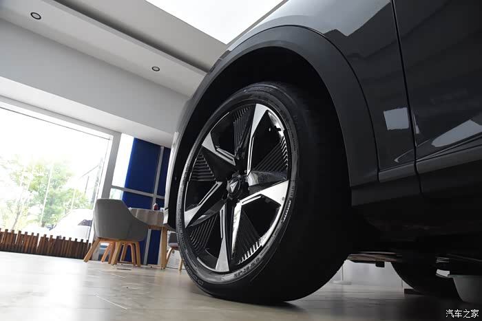 实拍车型采用了一组五辐式轮圈样式,低滚阻的造型样式让它与新能源车型更加匹配。235/55 R19的轮胎尺寸符合这一中型SUV该有的气场。