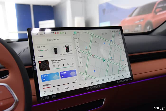 没有了传统样式的仪表盘,取而代之的则是一块大尺寸AR-HUD投影,不仅科技感爆棚,而且实际显示效果要好于传统仪表。