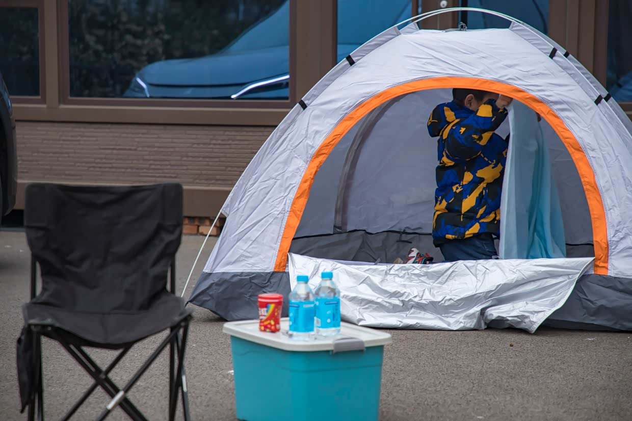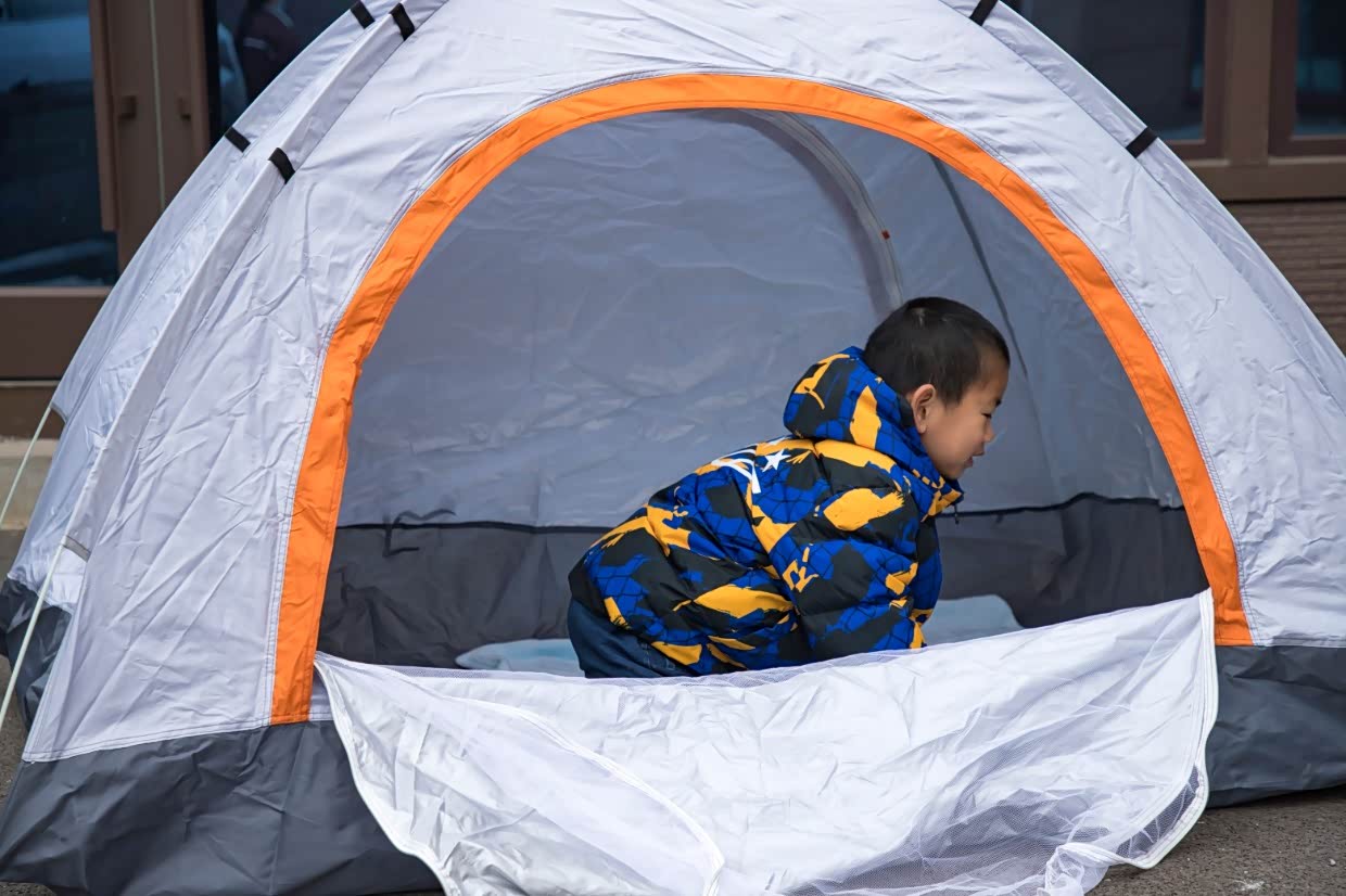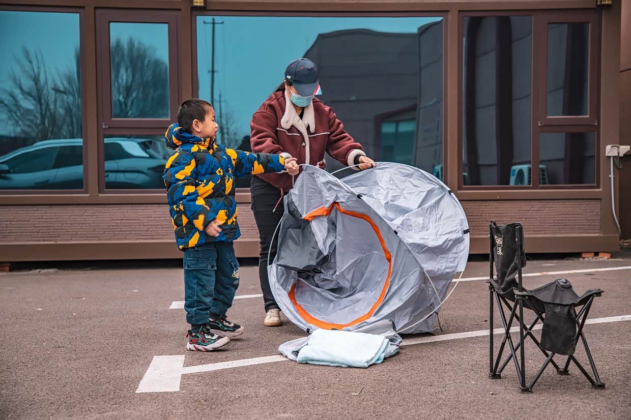 抵达目的地,媳妇和小宝就开始张罗着小帐篷的实用,都说母子同心,不一会的功夫,一个合格的帐篷就搭建起来了。