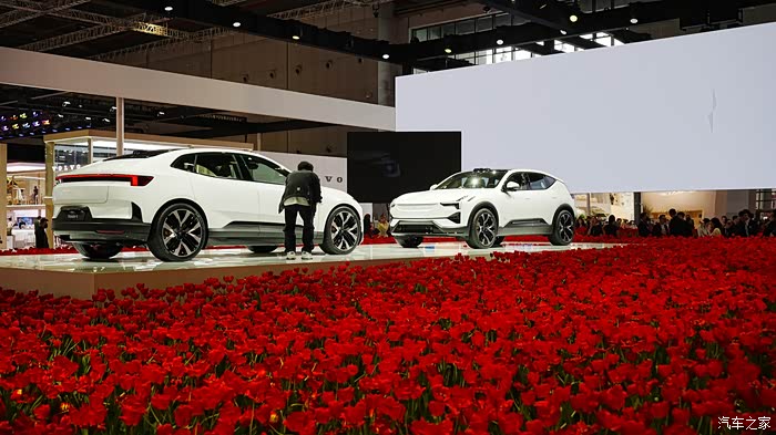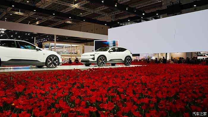 第一次看到车展展厅用花海来布置的,红色的花海和纯白的极星3搭配也太愈了!!!