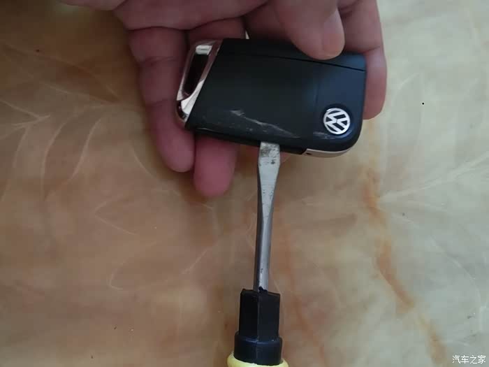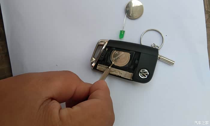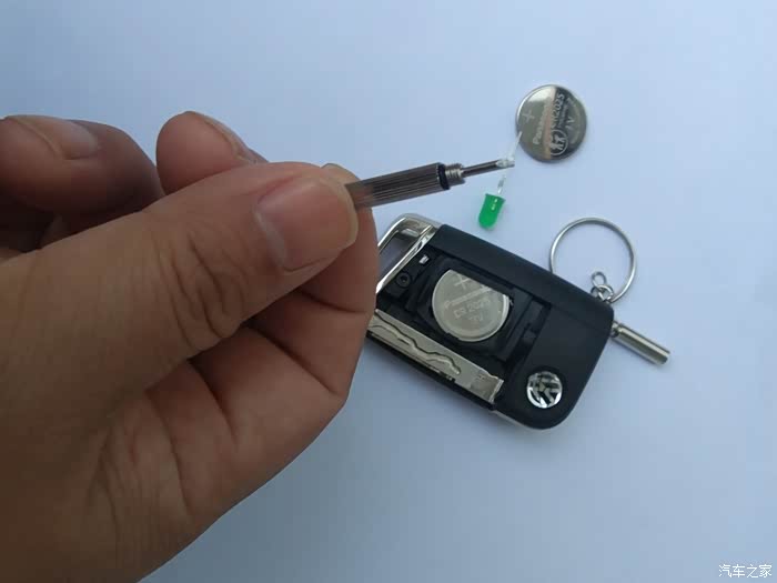 开始更换,用电池的工具将没电的电池翘出。装上新电池即可。然后把钥匙的电池壳装上就完成更换了。